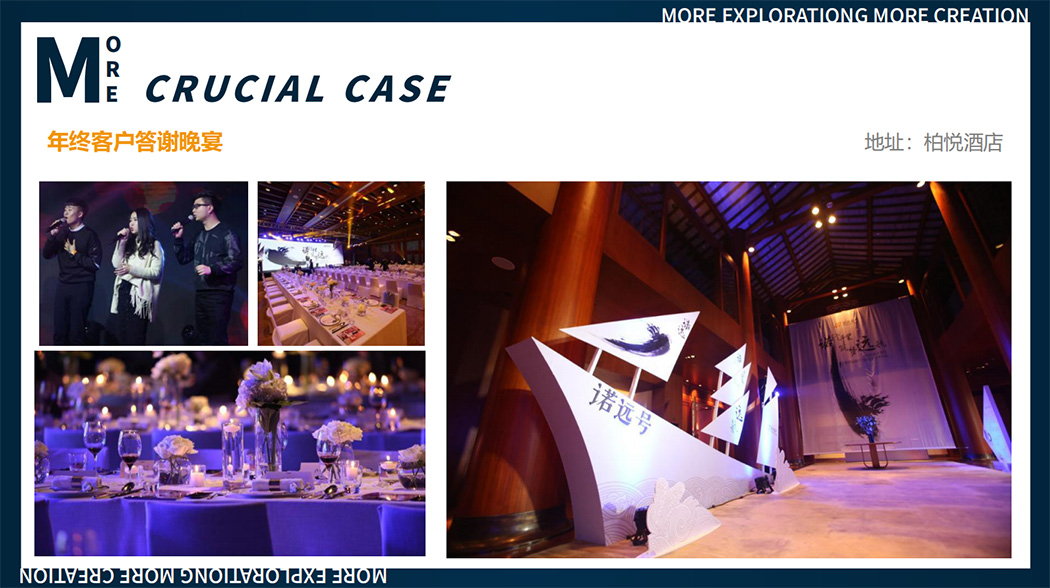 In this complicated market environment, MORE Explore &Create desires to create, to inspire and to innovate, using unusual ways to build up small and beautiful presentation. After more than 5 years of practicing in marketing activities, brand promotion, customized parties and innovative planning, MORE Explore &Create has formed a mature structure of whole case planning and executive philosophy of creative design.